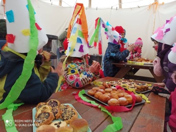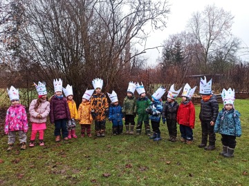 Začínáme ranním kruhem a společným naladěním na celý den. Většinu dopoledne jsme na výpravě. Na výpravě se učíme, zpíváme si, povídáme si a pozorujeme krajinu, kterou procházíme. Po obědě odpočíváme v teple maringotek. Odpočinek a celkové zklidnění je pro nás důležité. Čteme pohádky, prohlížíme si knihy. Odpoledne hlavně tvoříme, máme prostor na vlastní volnou hru.